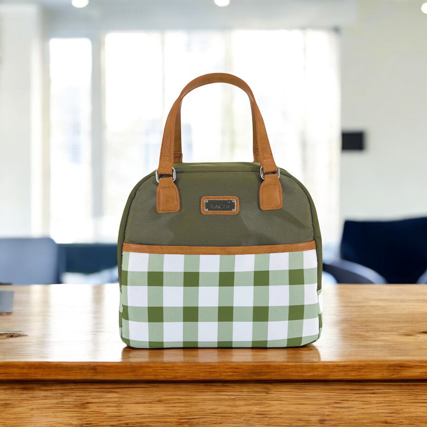 Sachi Insulated Cali Lunch Bag - Olive Green Gingham