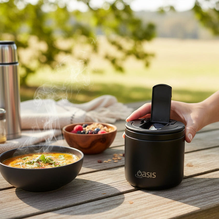 Oasis 480ml Insulated Food Flask w/ Handle & Spoon - Assorted Colours