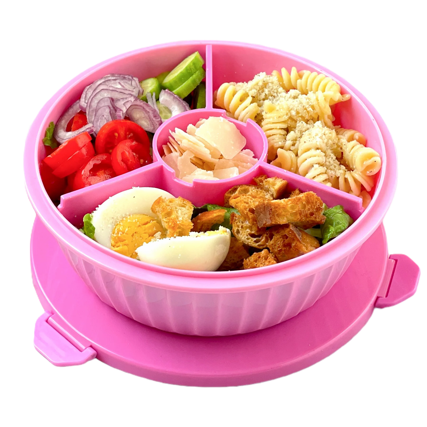 Total volume: Bowl 4.2 cups 💙 Toppings Well ¼ cup 💙 Removable Dip Cup ¼ cup